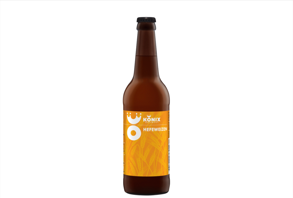 Konix Brewery, Hefeweizen — крафтовый пшеничный эль в классическом баварском стиле, обладающий характерным, интенсивным банановым ароматом с легкими нюансами гвоздики. Эти оттенки пиву обеспечивает щедрая порция пшеничного солода и специальные штаммы дрожжей. Во вкусе эля доминируют тона свежей выпечки, уравновешенные деликатной хмелевой горечью в 12 IBU. Умеренная крепость делает напиток легким и сбалансированным.