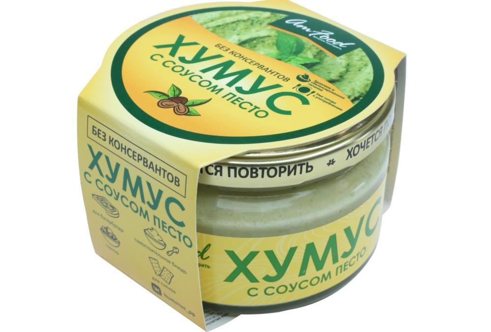 Нут, вода питьевая, кунжутная паста тахина, масло подсолнечное, масло оливковое, соус песто масло подсолнечное, базилик, соль, орех кедровый, чеснок, соль, регулятор кислотности лимонная кислота, чеснок сушёный, перец красный молотый.