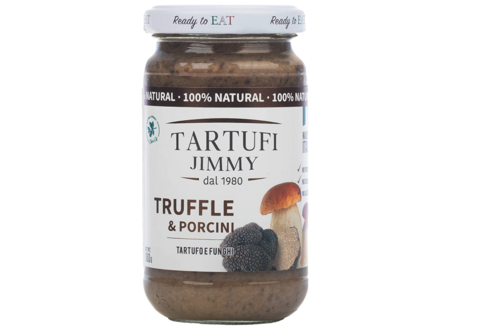 Грибы Шампиньоны 40%, трюфельный сок, подсолнечное масло, белые грибы 5%, модифицированный крахмал, летний трюфель 3%, оливковое масло первого холодного отжима 2%, растительная клетчатка, натуральные ароматизаторы, эмульгатор: подсолнечный лецитин, соль, петрушка, перец.