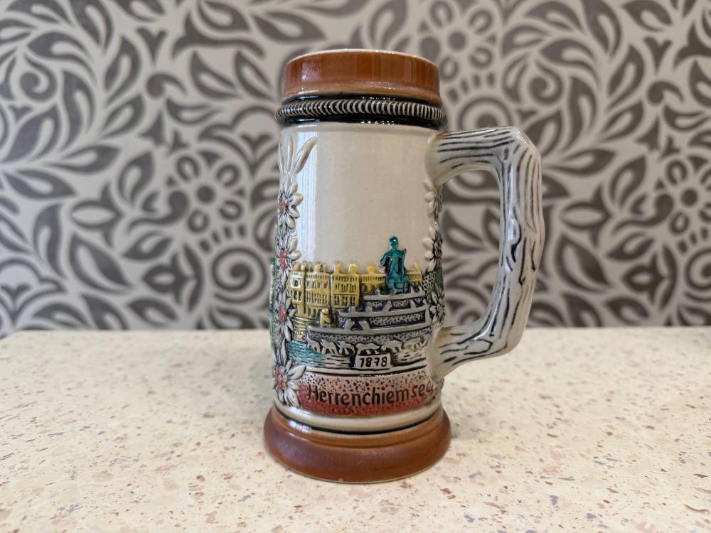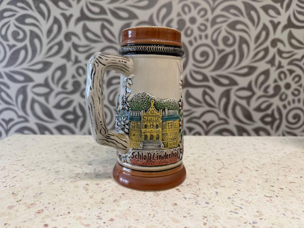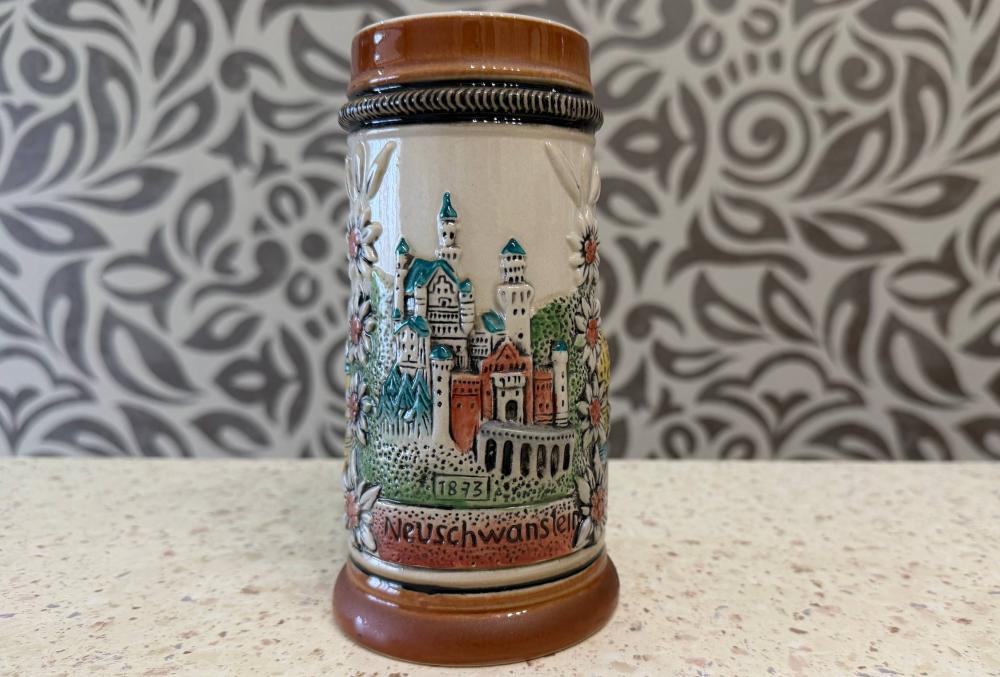 Керамическая пивная кружка с рельефным изображением замка Нойшванштайн.