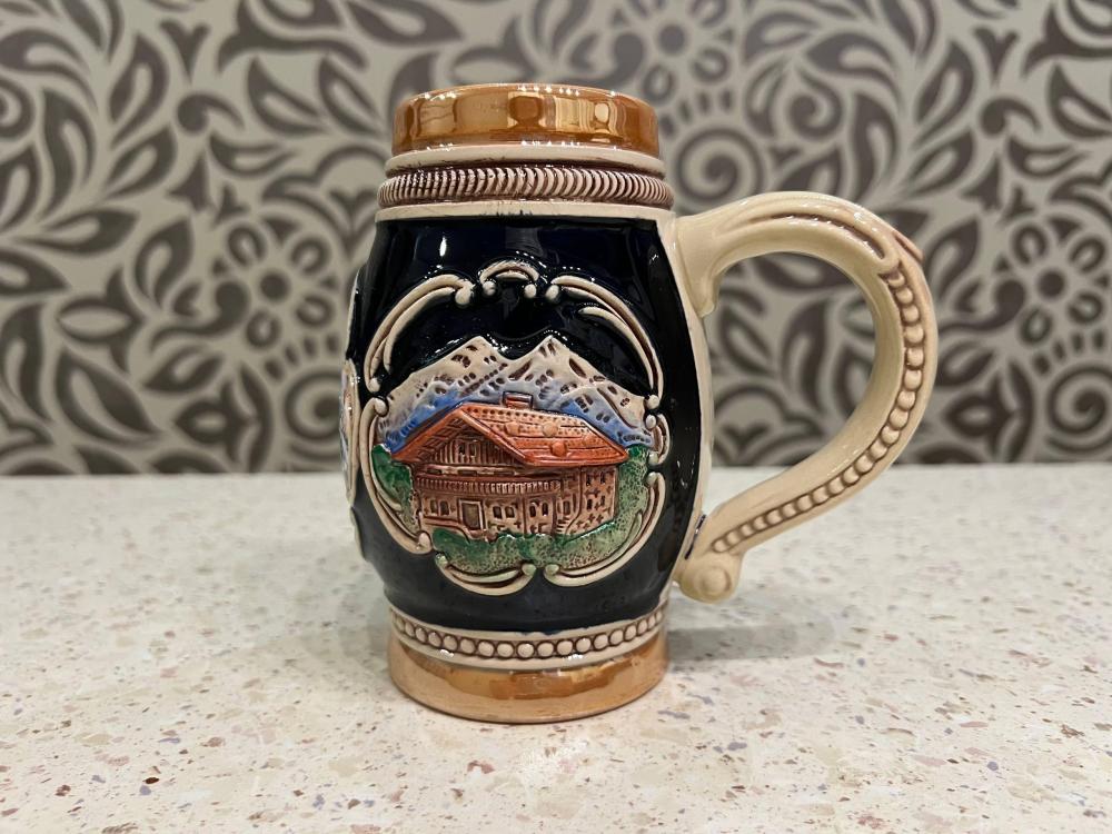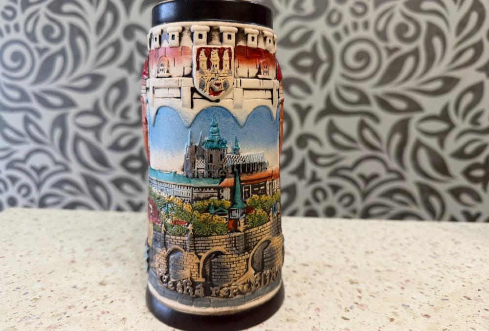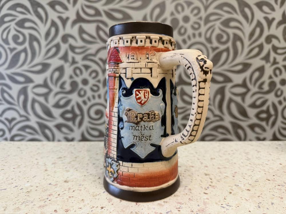 Керамическая пивная кружка с детальным рельефным изображением Пражского Града в Чехии, изготовленный в Германии.