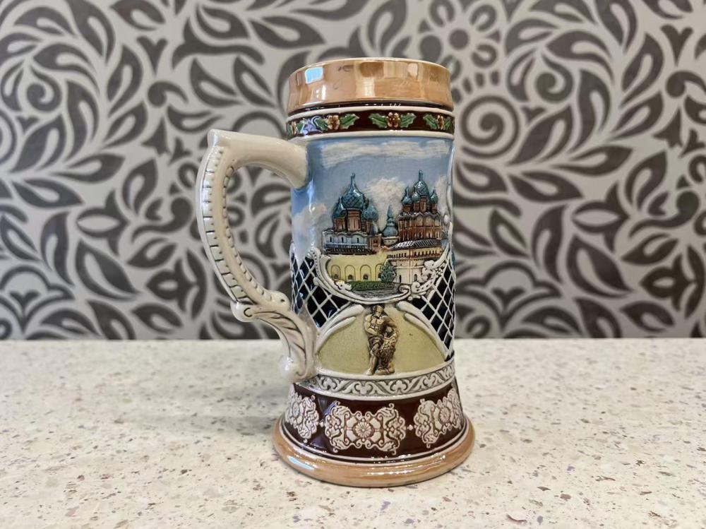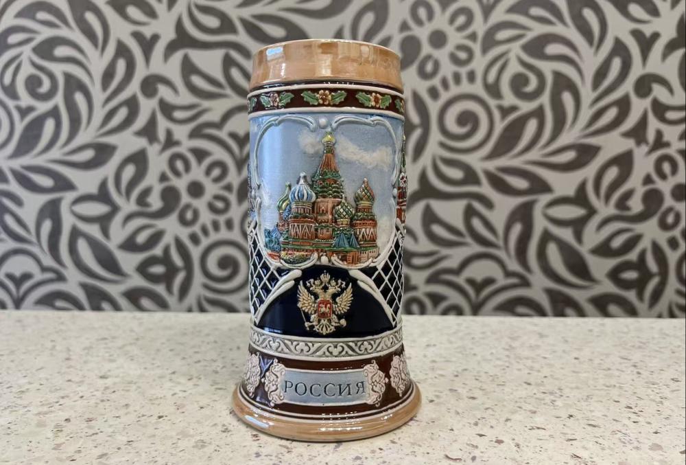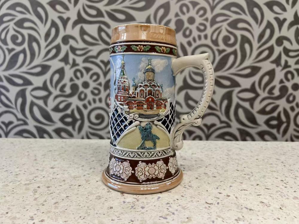 Пивная кружка — декоративная керамическая кружка с рельефным изображением собора Василия Блаженного в Москве, Россия.