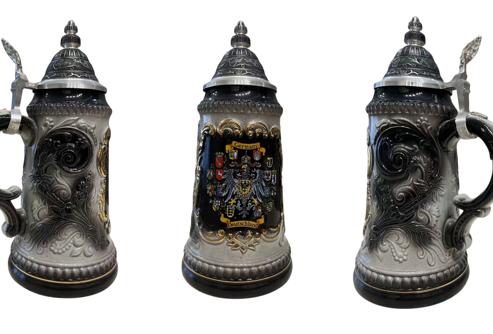 Немецкая пивная кружка производства Zöller & Born или King-Werks, украшенная гербом Германии с изображением орла и государственными гербами.