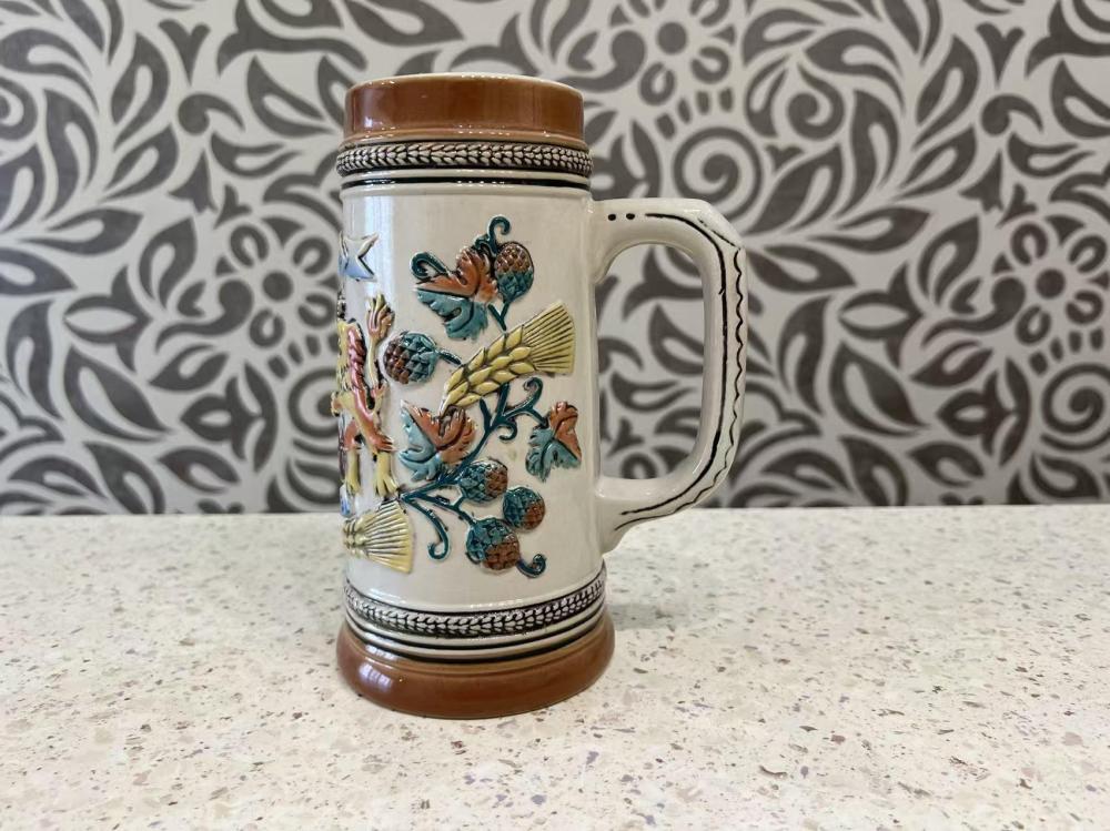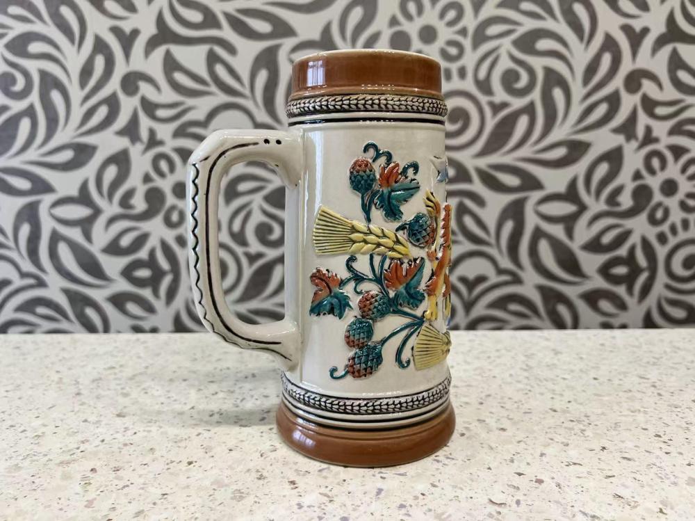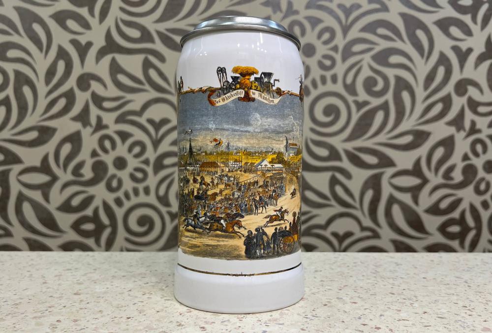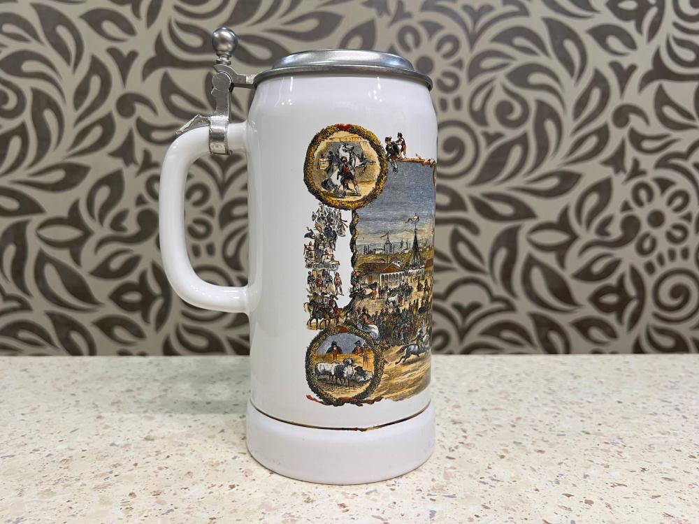 Винтажная немецкая пивная кружка производства Gerz, украшенная мотивами Октоберфеста, посвященного этому мюнхенскому фестивалю.