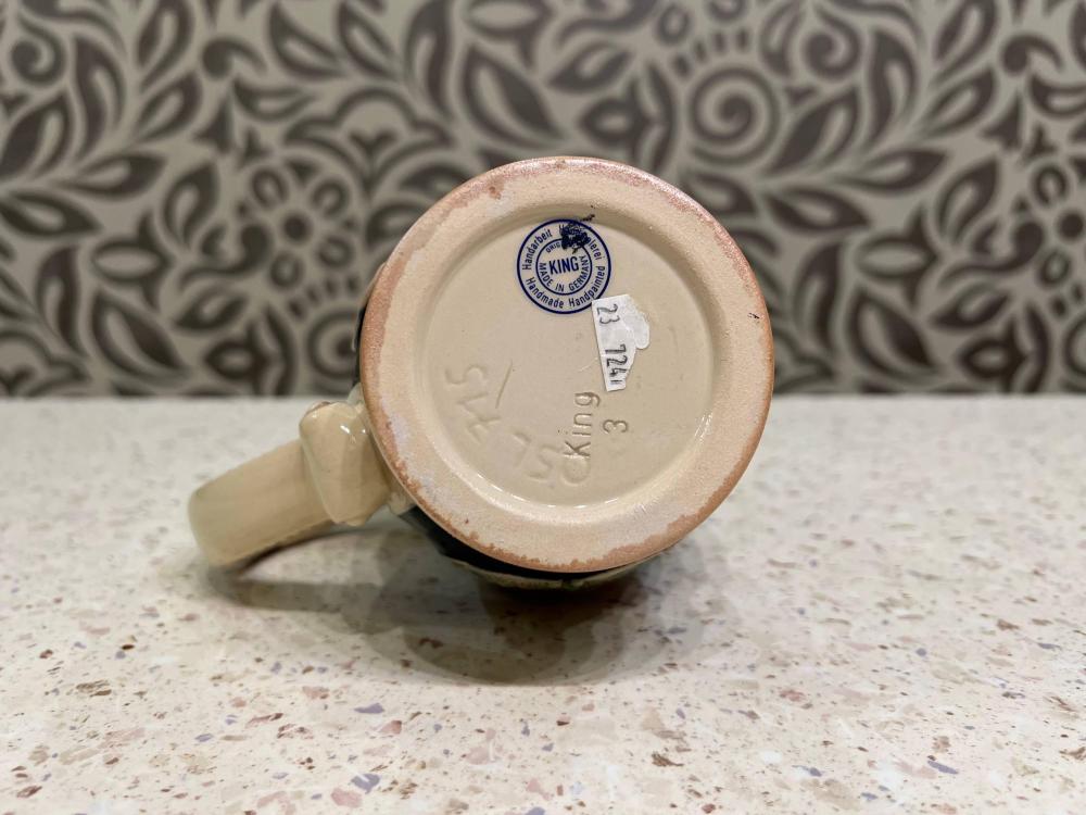 Эта кружка изготовлена вручную в Канненбекерланде, немецком центре гончарного дела и производства пивных кружек. Сделано в Германии.